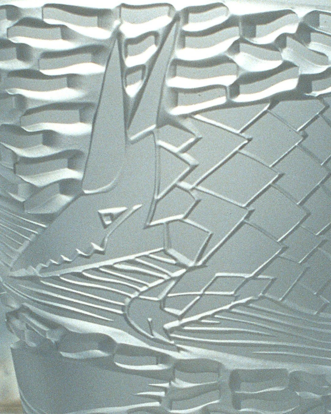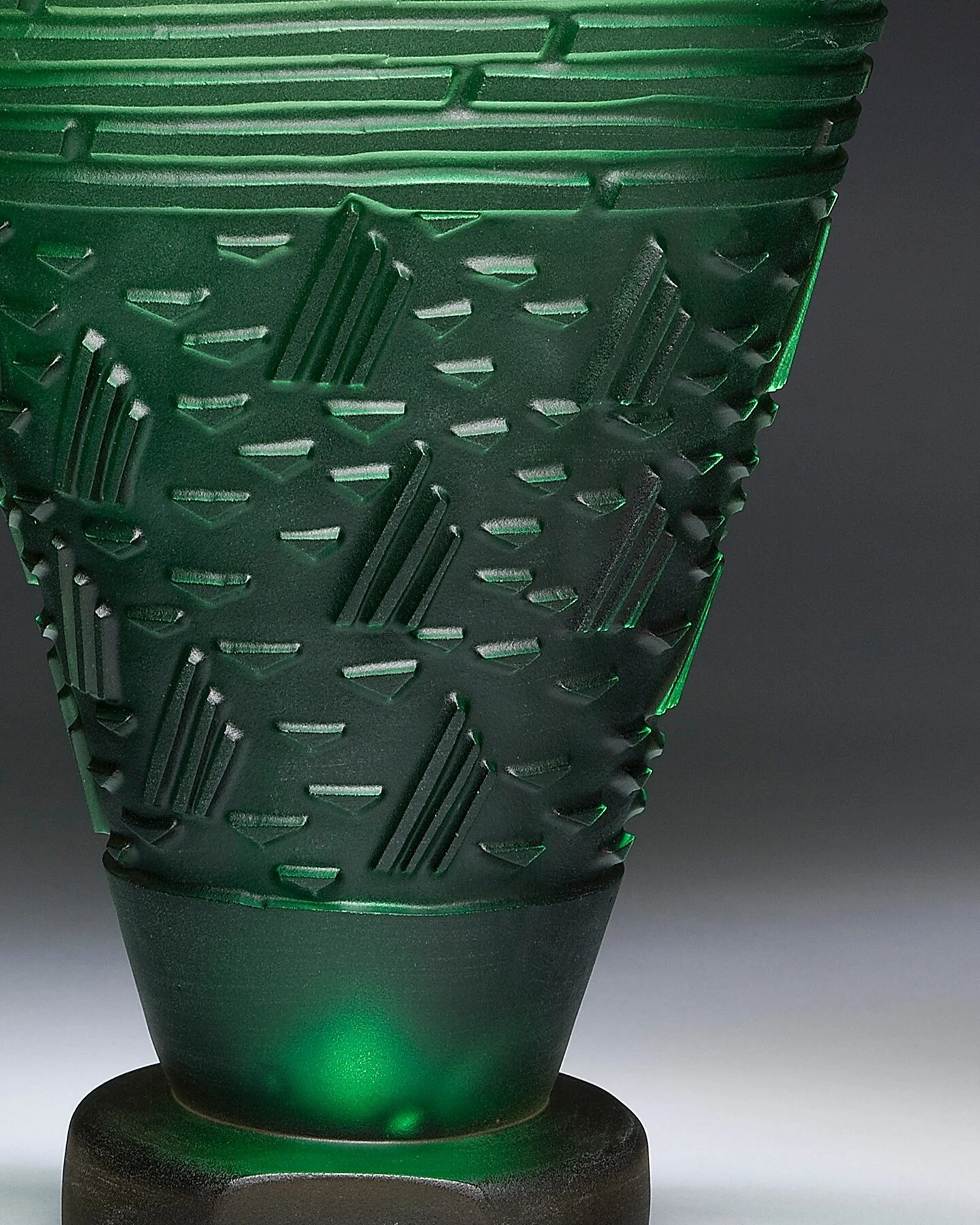 He was introduced to glass at the California College of Arts and Crafts while studying under Marvin Lipofsky.